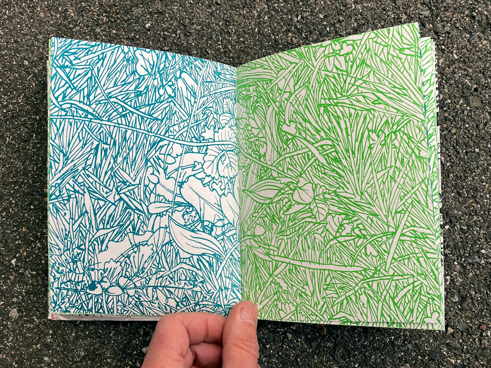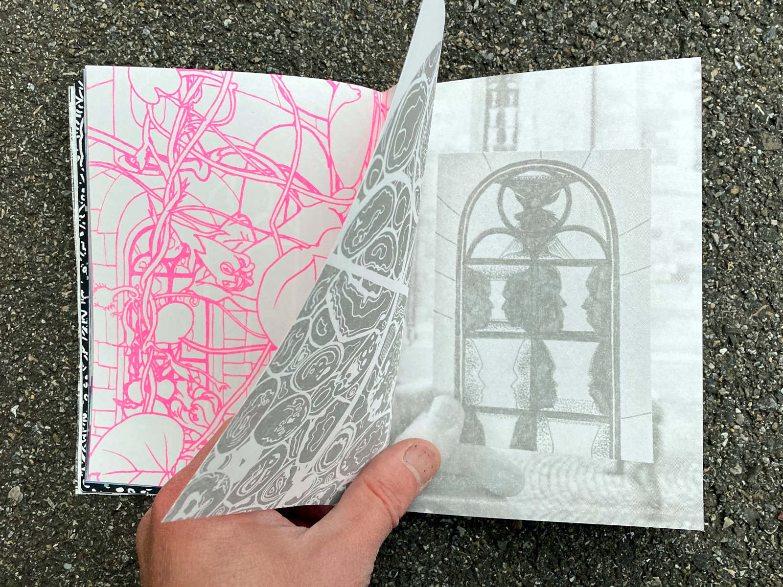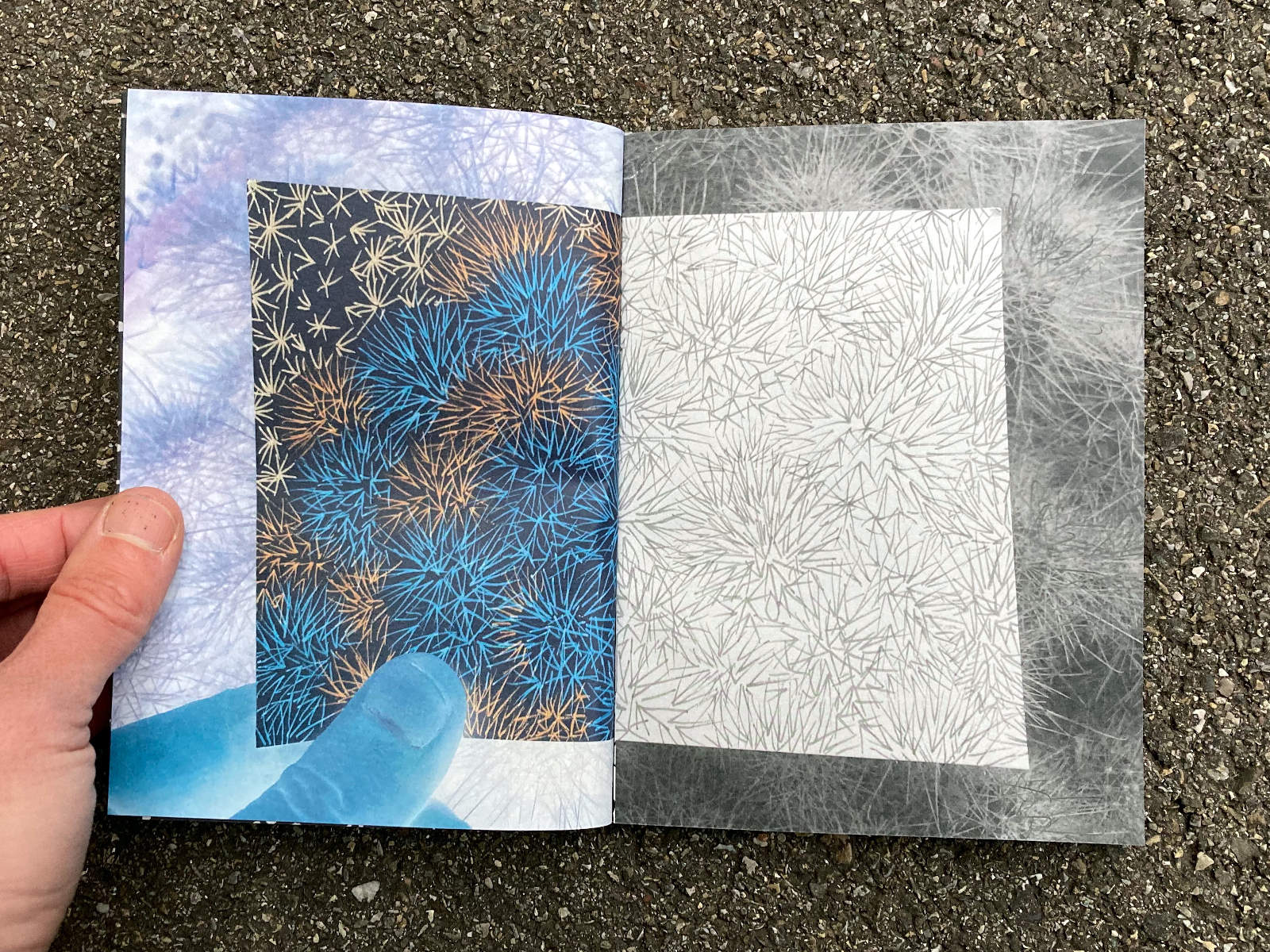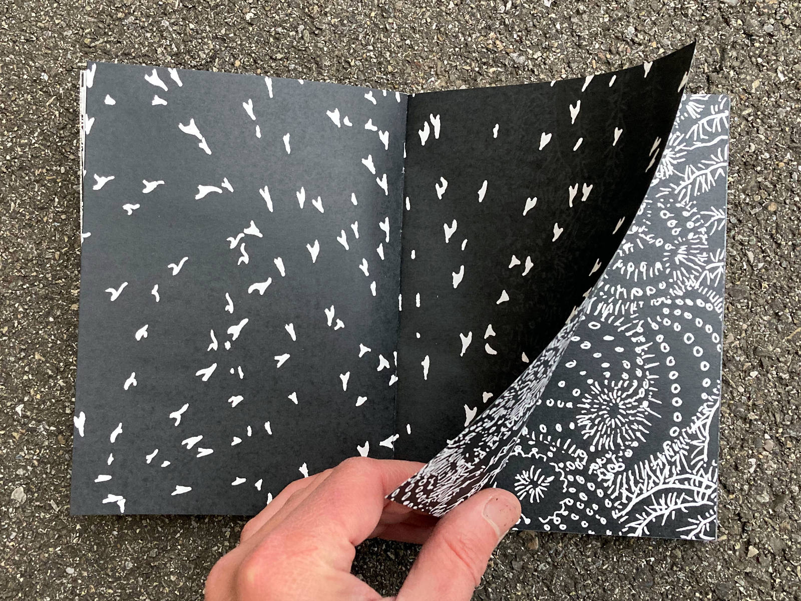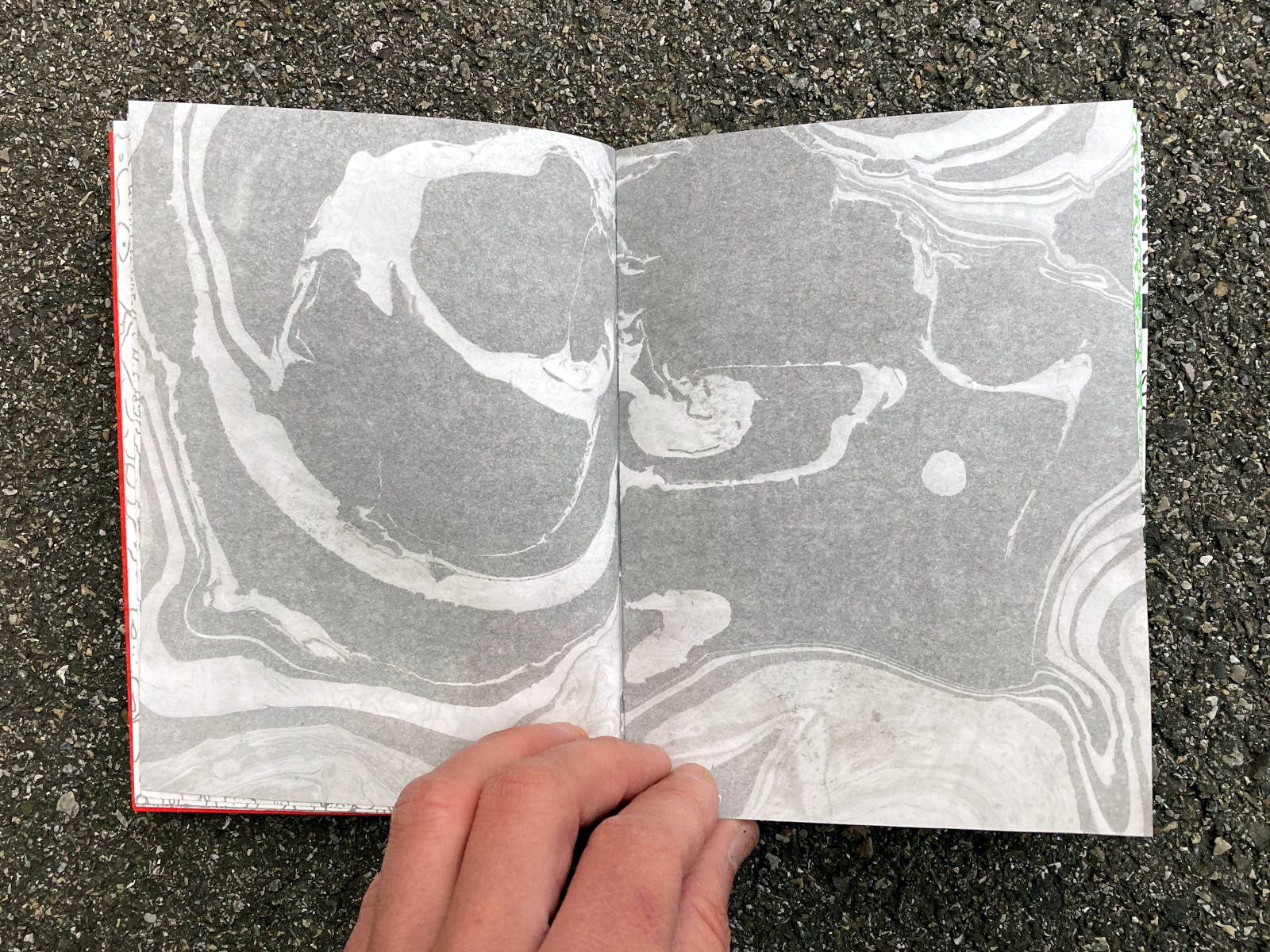 120 pages, 13.2 x 18 cm, suminagashi, riso and digital print, thread stitch hand bound, 50 CHF