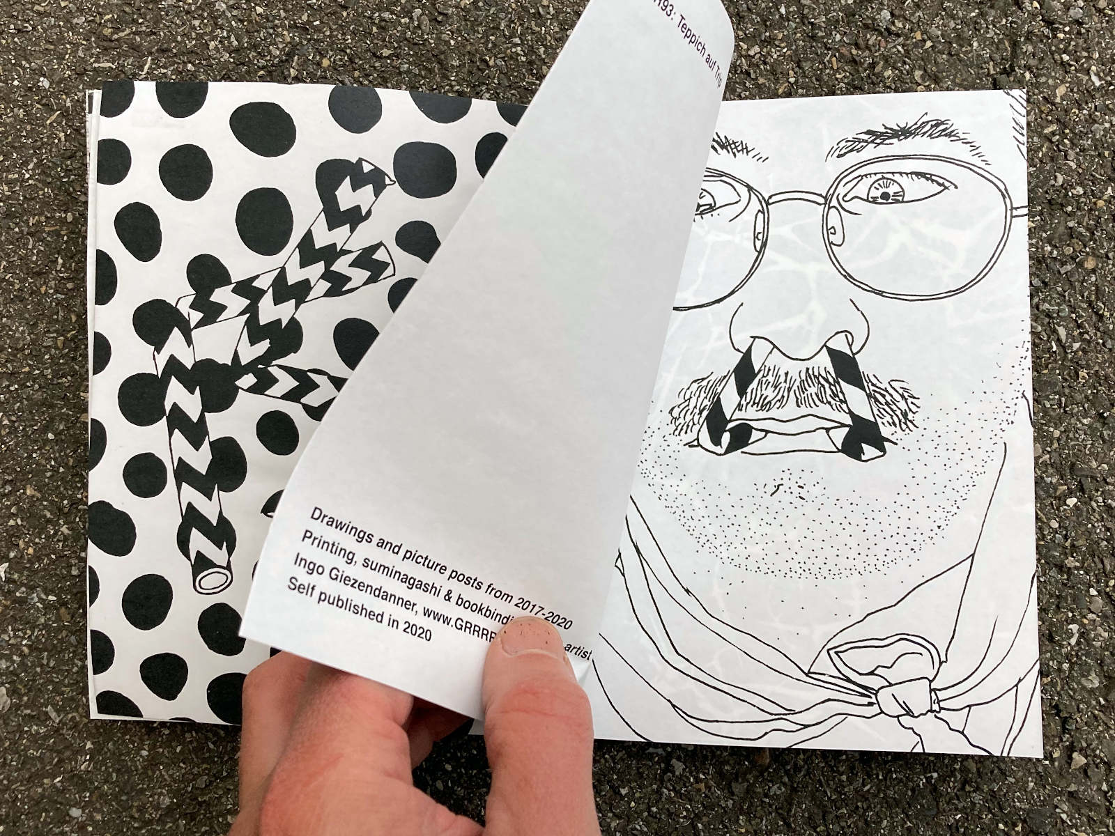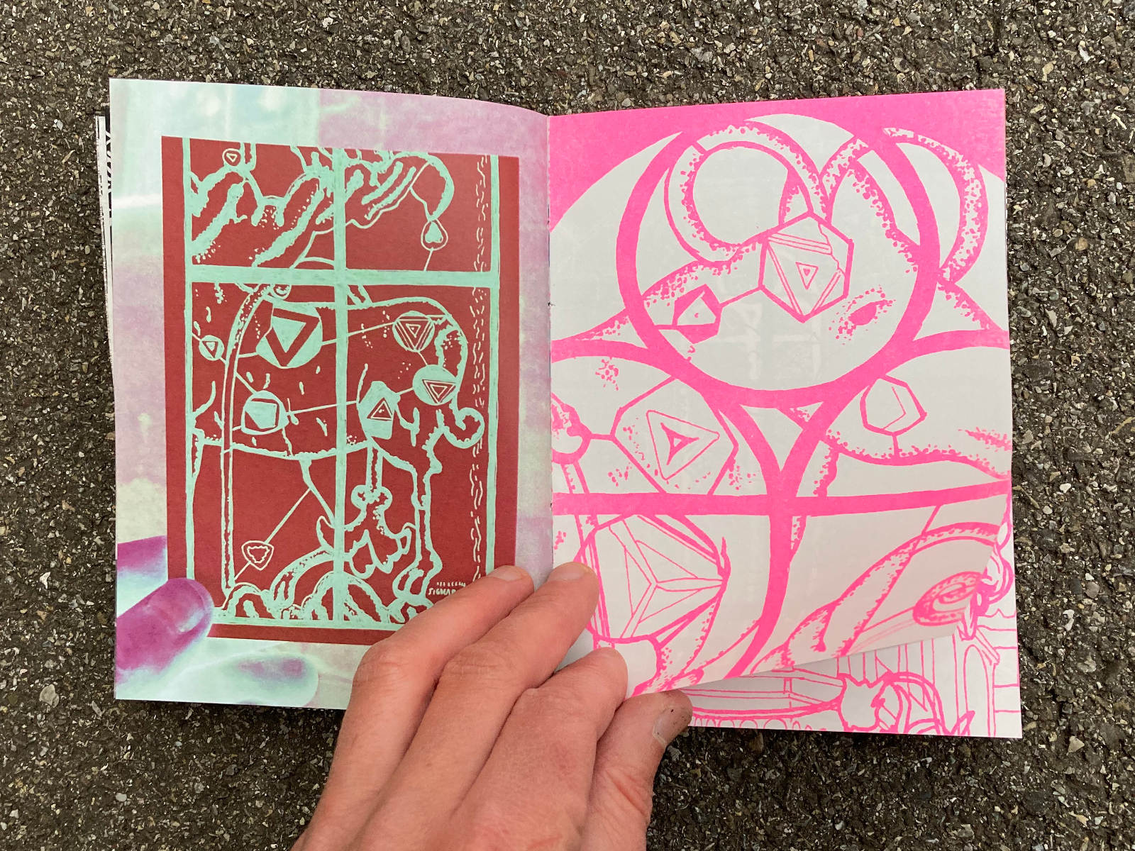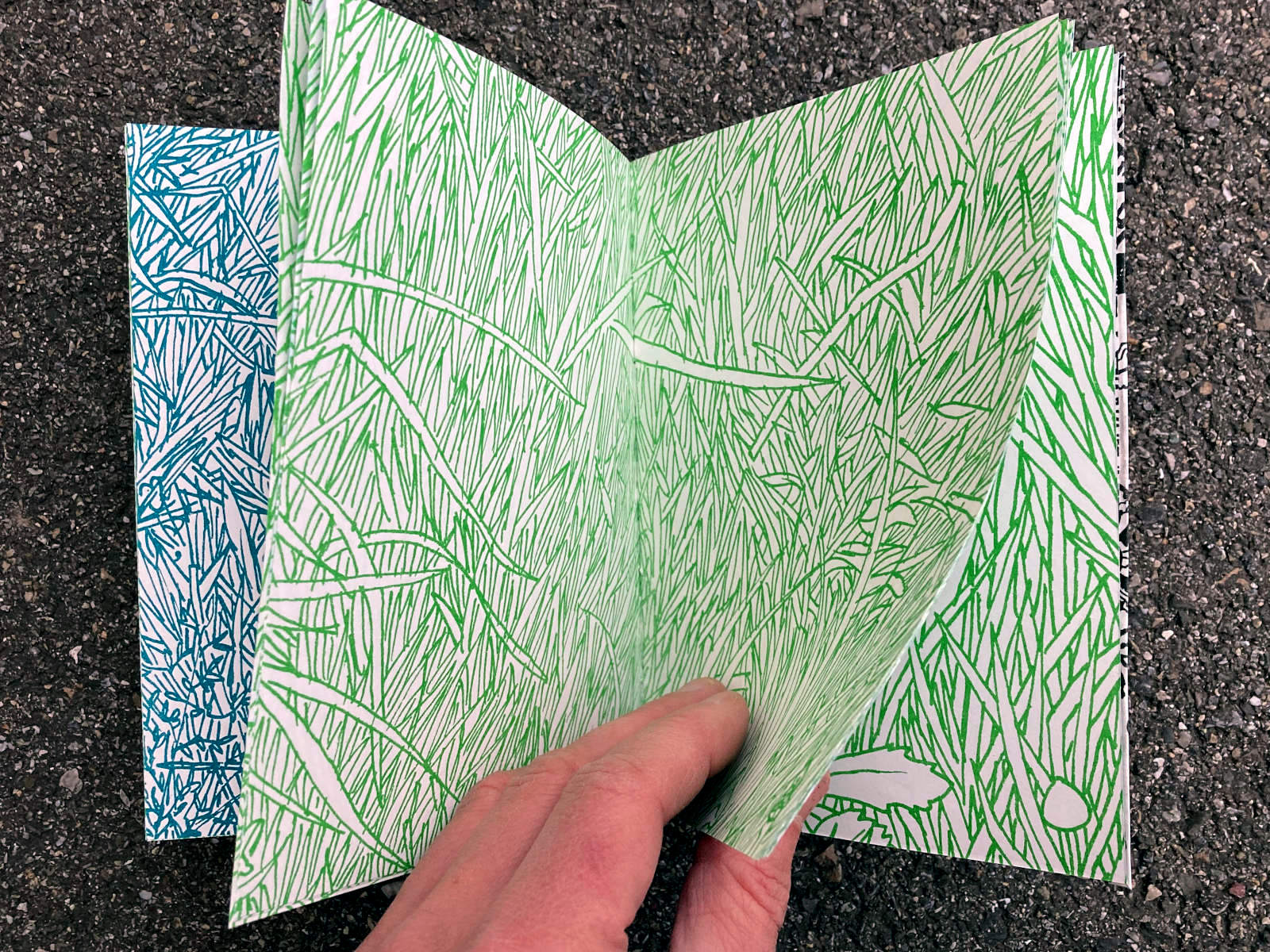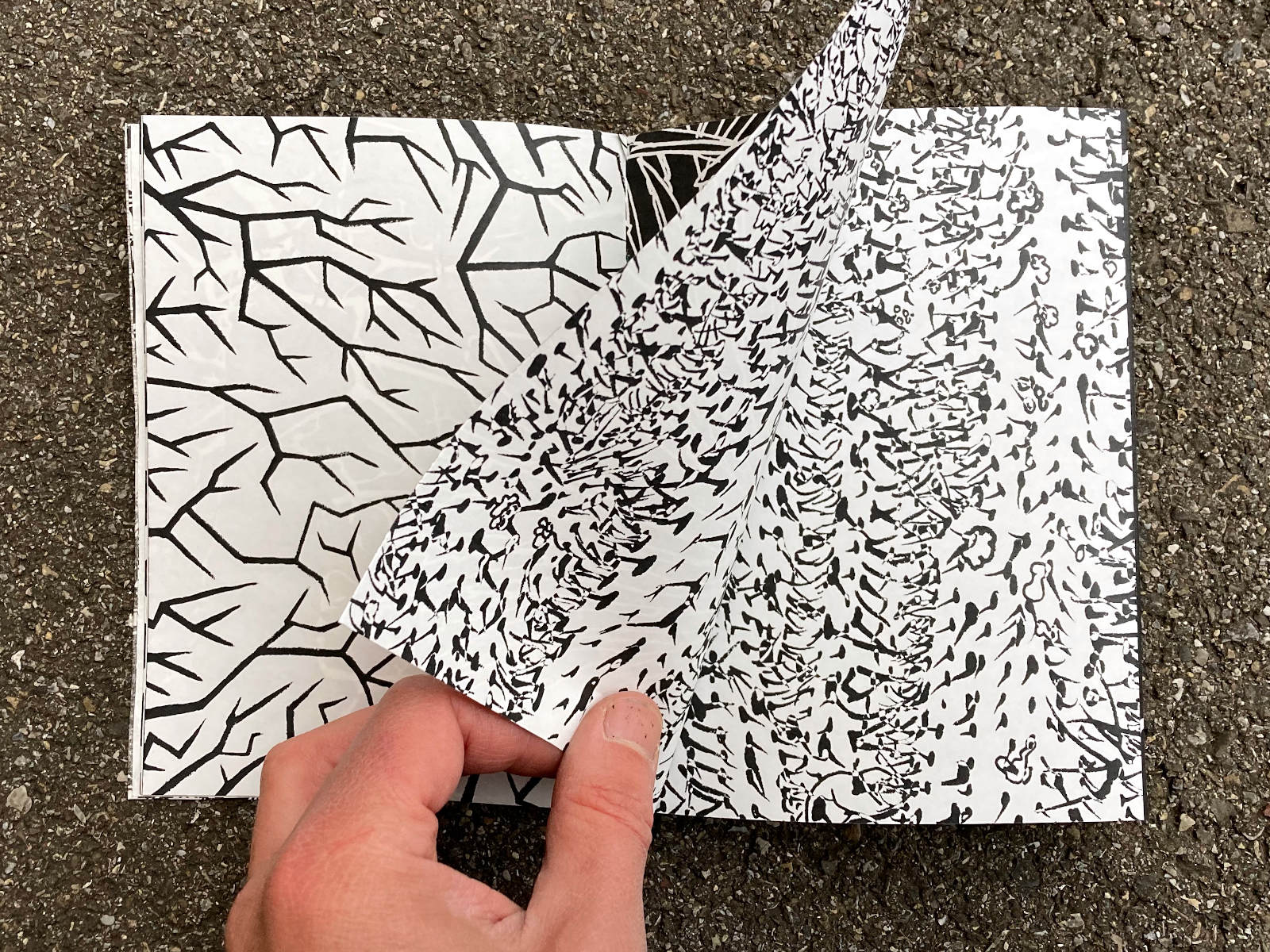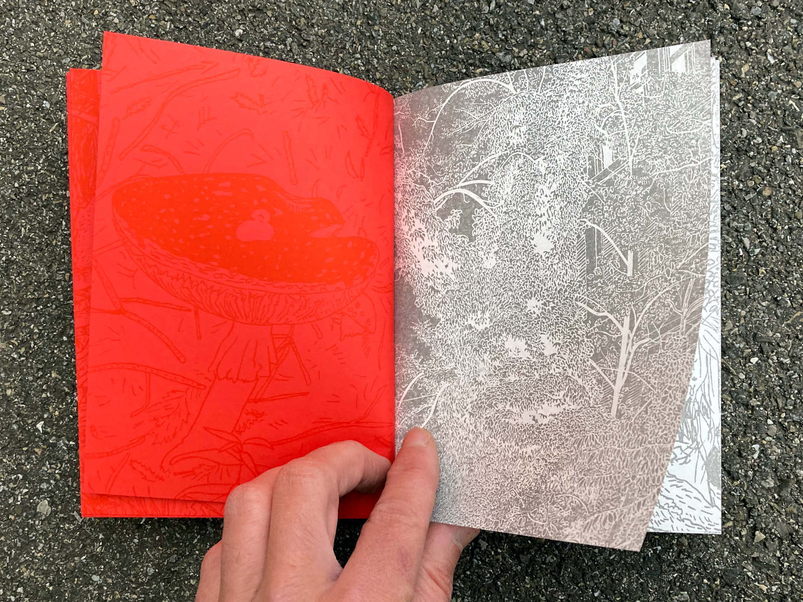 120 pages, 13.2 x 18 cm, suminagashi, riso and digital print, thread stitch hand bound, 50 CHF