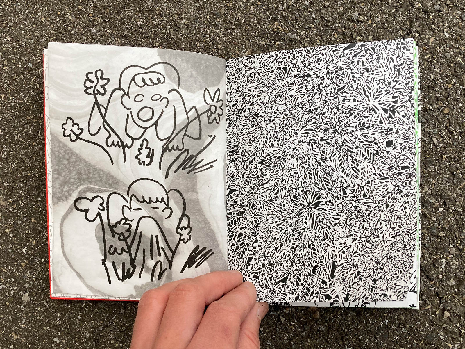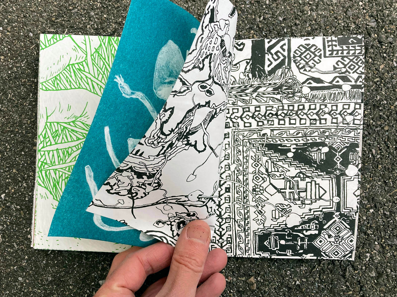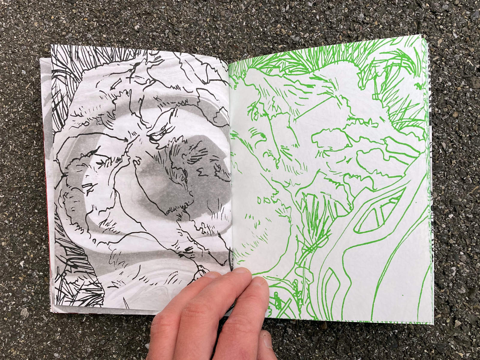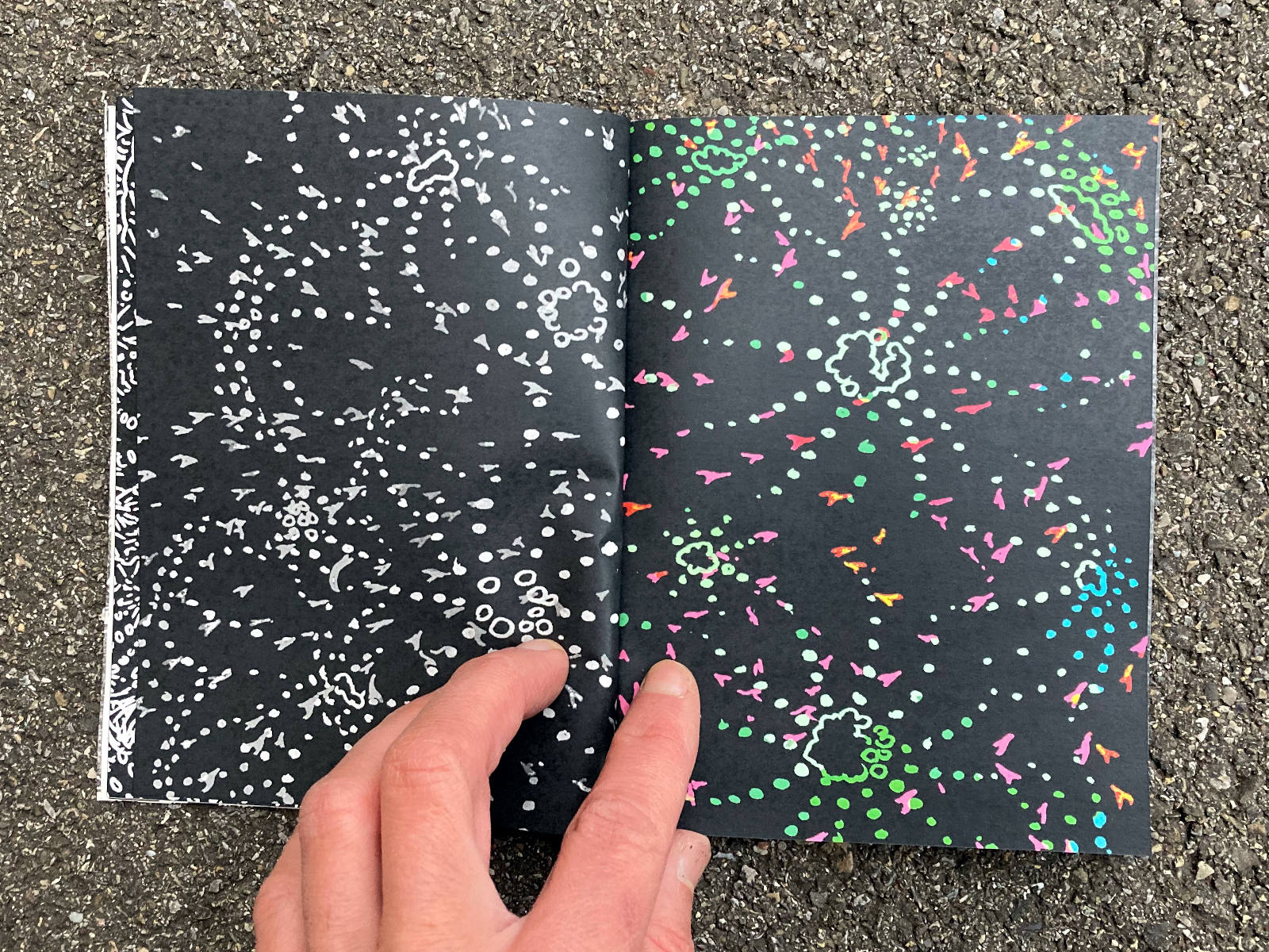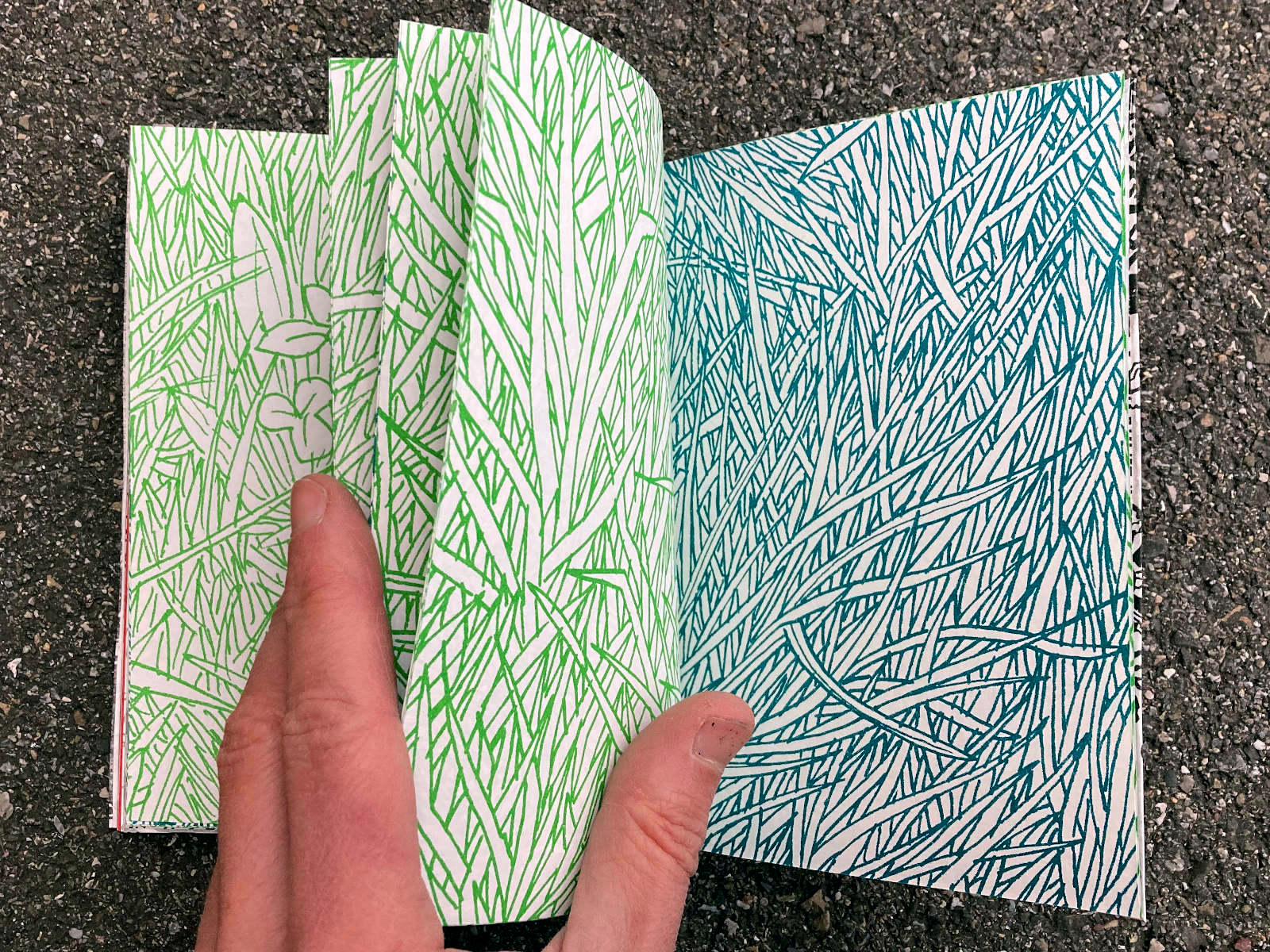 120 pages, 13.2 x 18 cm, suminagashi, riso and digital print, thread stitch hand bound, 50 CHF