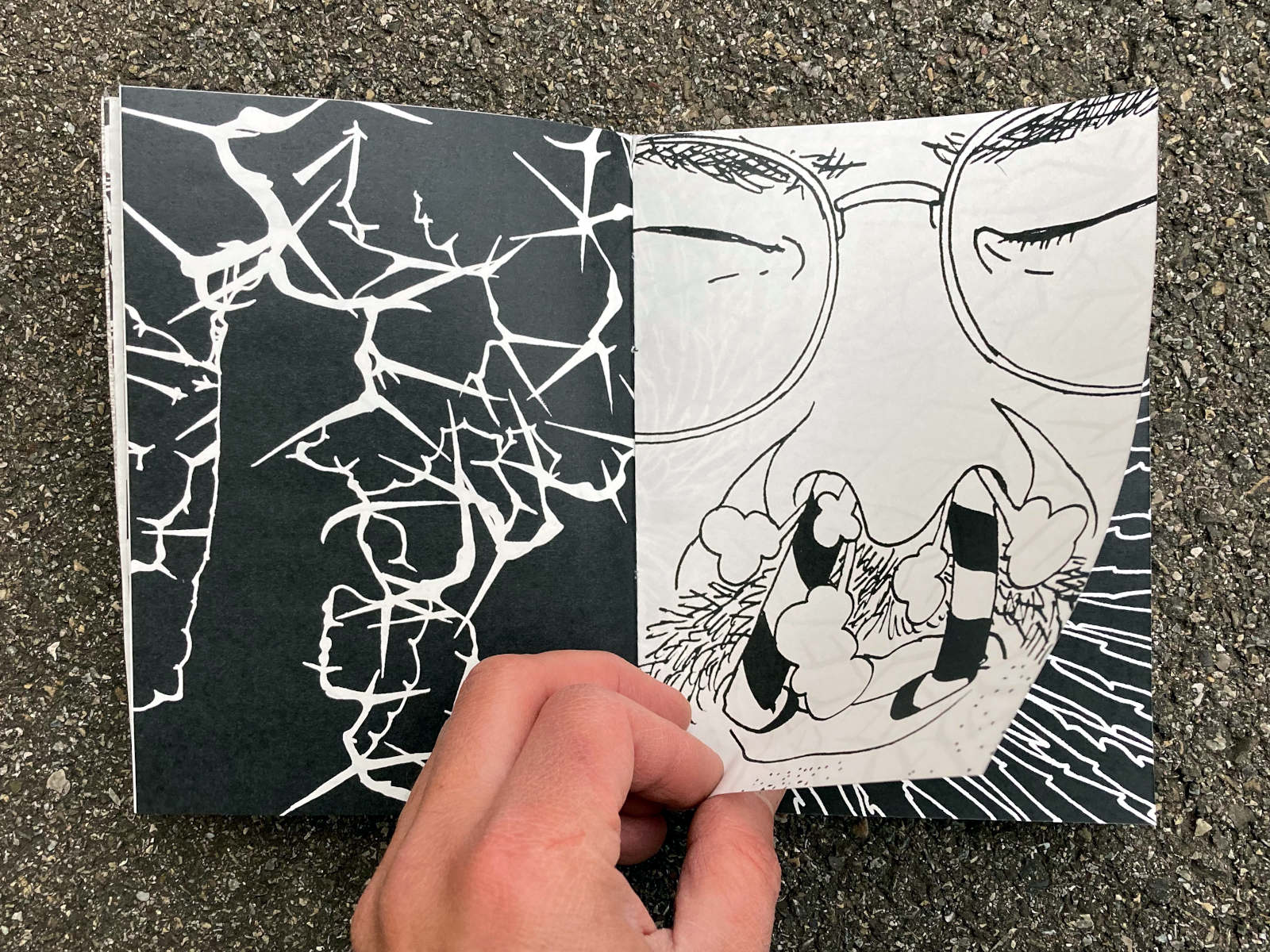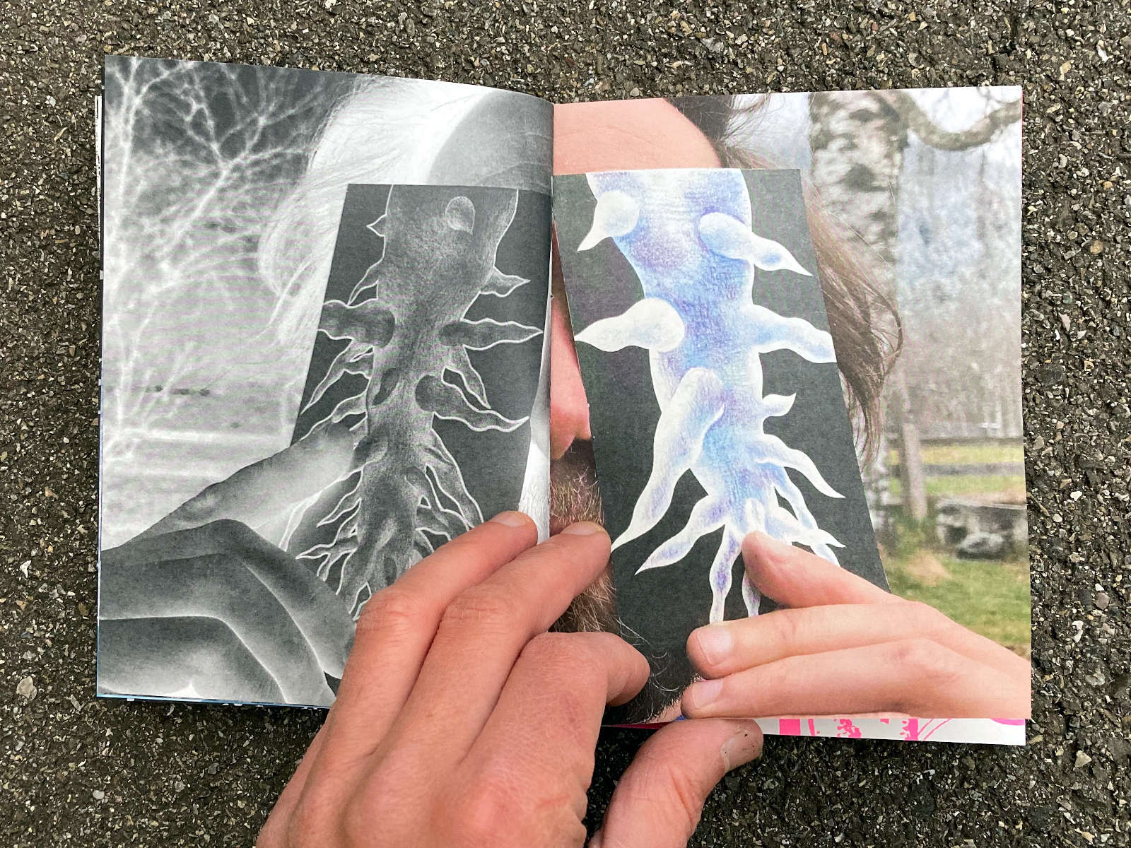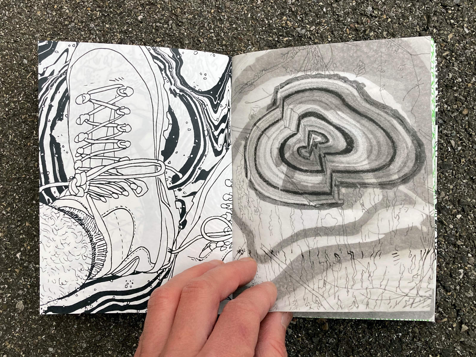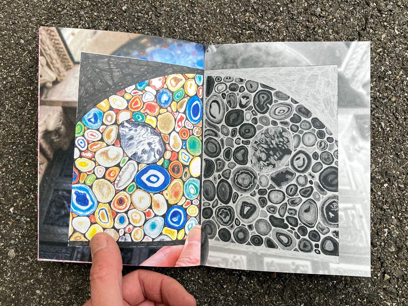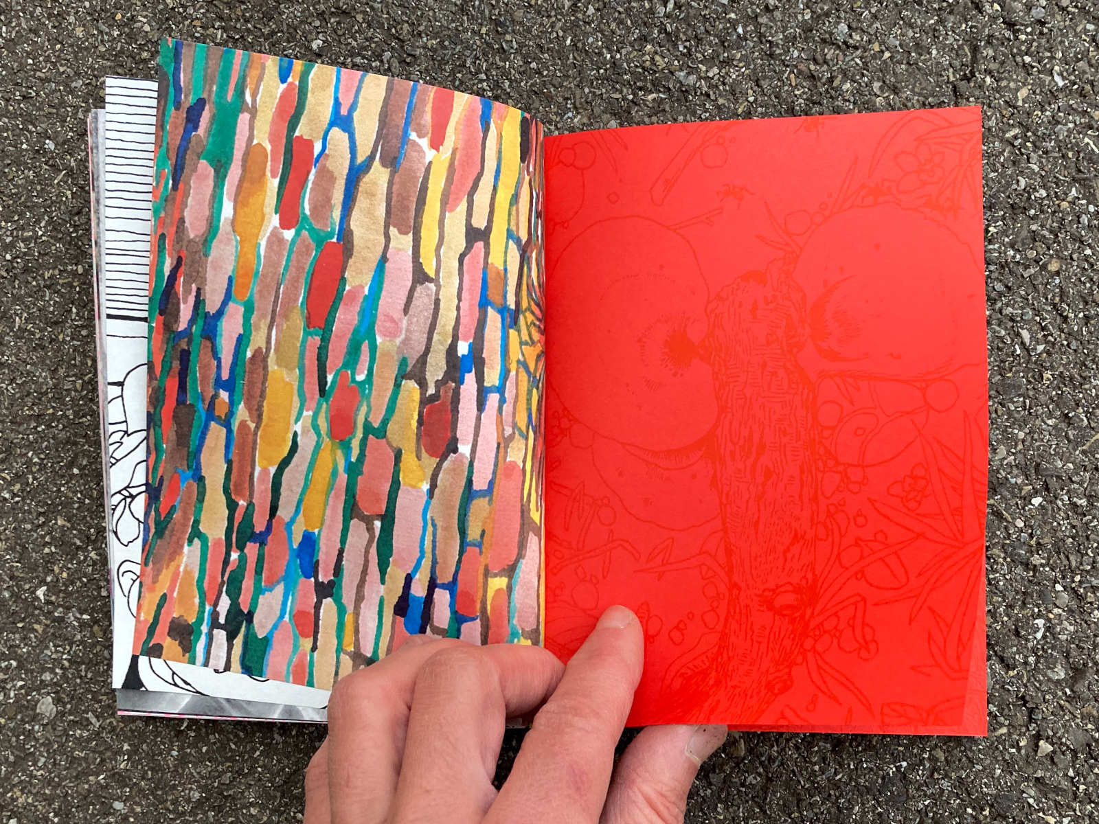 120 pages, 13.2 x 18 cm, suminagashi, riso and digital print, thread stitch hand bound, 50 CHF